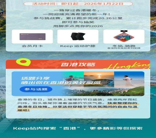 香港冬日暖跑挑战赛用脚步迎接焕新起点! Keep 2026-01-08 15:35:15 迎接 脚步 起点 挑战 香港 上一篇: 东莞游泳名将陈苏伟获央视体坛荣耀之夜“极限瞬间”人物称号 下一篇: 第35届乒乓球亚洲杯将于2月举行,国乒名单出炉