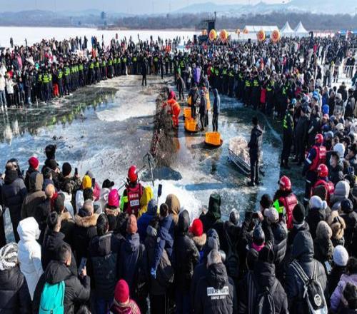 2026年2月1日,沈阳棋盘山第二届秀湖冬捕嘉年华暨渔业经贸会举行。据了解,本次活动将冰雪运动、渔猎文化、美食文化相融,汇冬捕之趣、鱼宴之鲜、民俗之美、经贸之机为一体,打造了产业一体化、体验一站式的冰雪新IP 。视觉中国 图