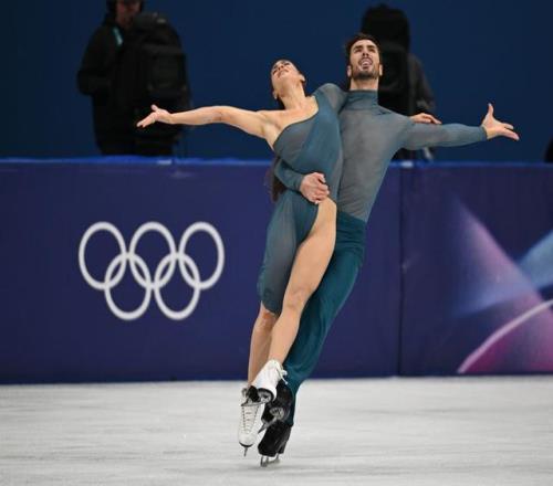 2月11日,法国组合博德里(左)/西泽龙在自由舞比赛中。新华社记者 程敏 摄