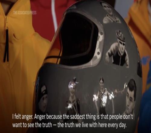 26岁的乌克兰钢架雪车运动员赫拉斯克维奇来到米兰,但不能参赛,因为他佩戴了一个特别的头盔。