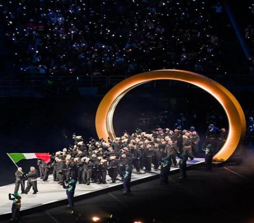 设计细节中,夹克与 Polo 衫的内里加入了意大利国歌《Il Canto degli Italiani》的歌词——这一处理既是极致的爱国表达,也是对奥运精神的深情致敬。
