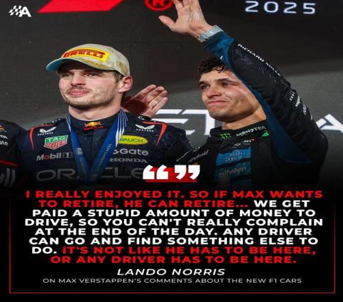 卫冕冠军诺里斯则给出了另一种回应。他承认2026年的赛车确实与过去截然不同,驾驶风格需要大幅调整,但他将其视为F1进化过程中必然的挑战,且他本人完全享受其中。诺里斯认为,就车手们"高得离谱"的薪水而言,适应新赛车本就是分内工作,而非一件值得抱怨的事。