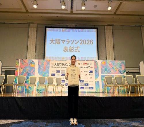 在大阪马拉松颁奖仪式现场的郑小倩