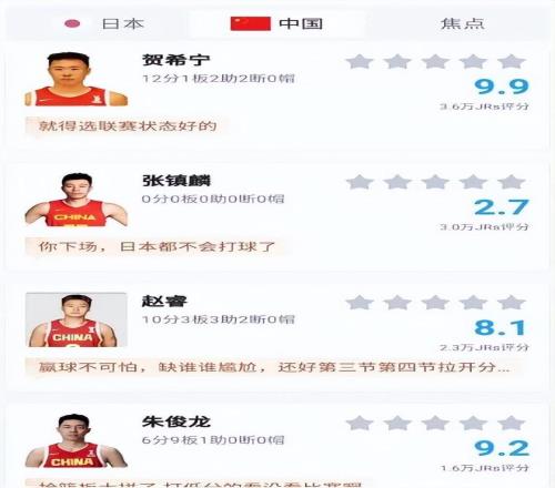 赵继伟和朱俊龙在这场比赛中的表现也非常不错,两人的评分分别是9.4分和9.2分。这次入选中国男篮后,不少球迷对赵继伟的意见是比较大的。不过在这场比赛中,赵继伟得到了14分,关键时刻不手软,也是中国男篮逆转的功臣之一。比赛结束后,不少球迷都为赵继伟排队道歉。