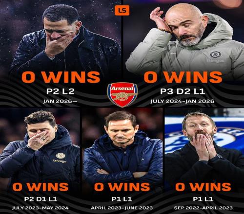 切尔西近五位主帅都没能击败塔帅,上一位做到的是图赫尔 -