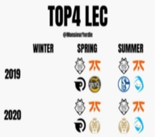 外媒统计2019年以来每赛季LEC前四队伍:G2从未缺席 -
